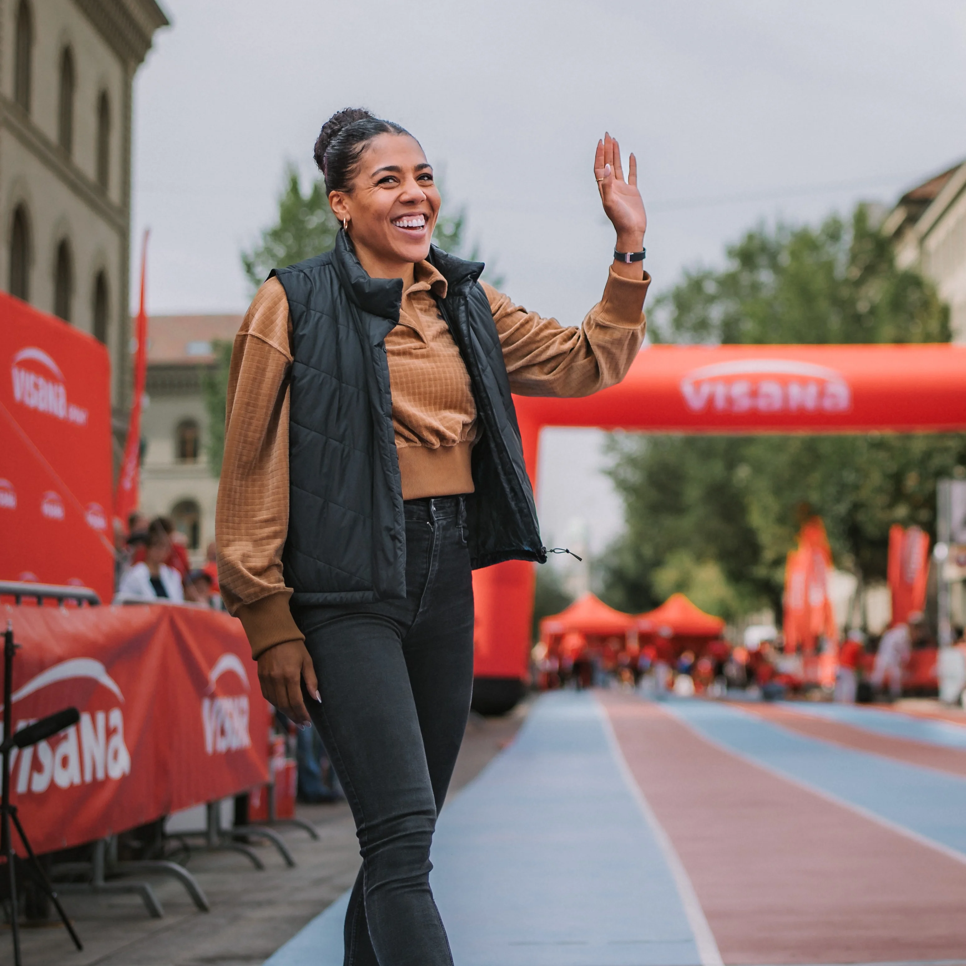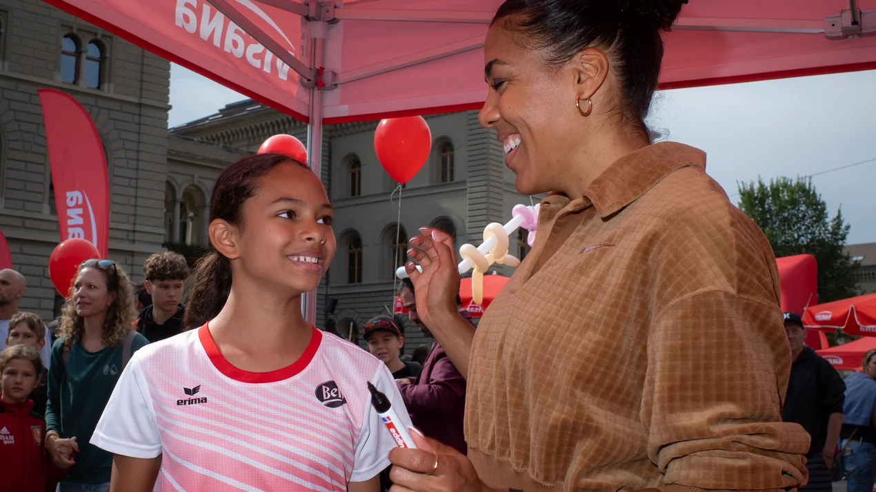 Auf dem Bundesplatz in Bern ging im vergangenen Jahr der dritte Visana Sprint Schweizer Final über die Bühne. Die schnellsten Nachwuchs-Sprinterinnen und -Sprinter durften sich von der Visana Sprint-Botschafterin Mujinga Kambundji ehren lassen.